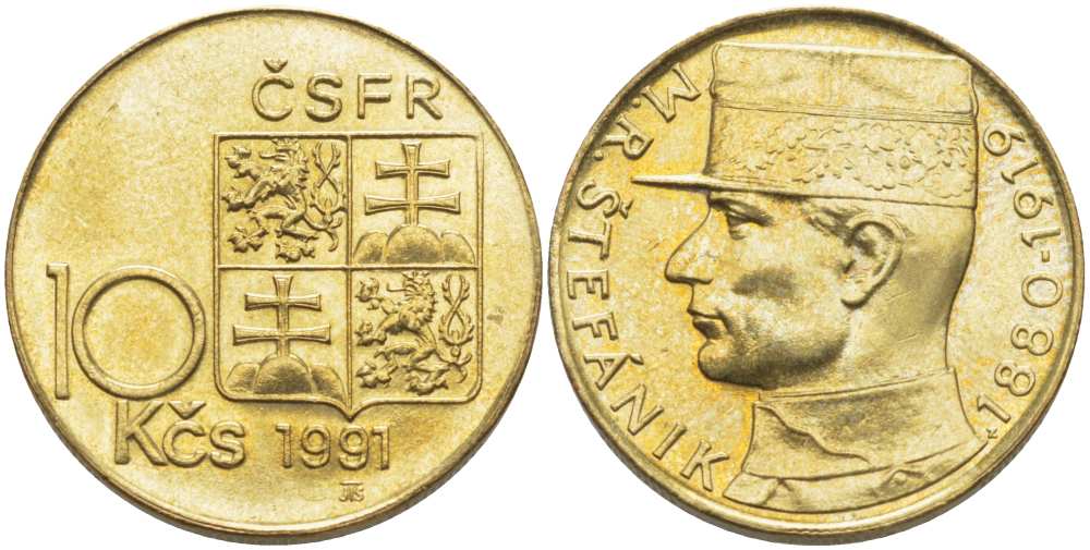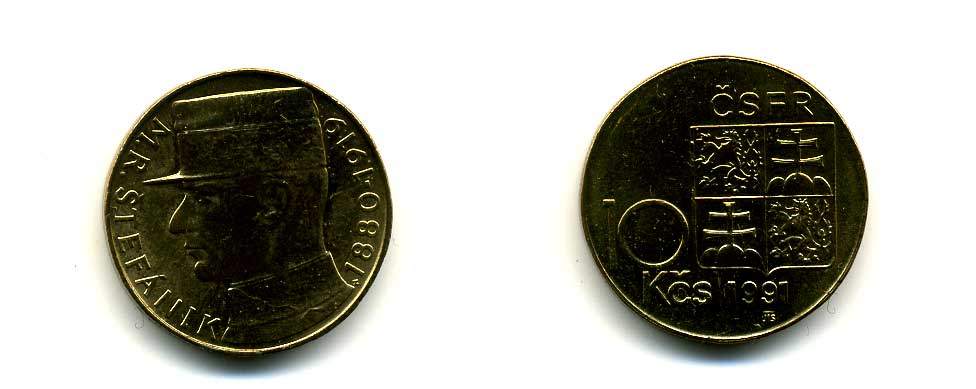 ЧЕШСКАЯ И СЛОВАЦКАЯ ФЕДЕРАТИВНАЯ РЕСПУБЛИКА 10 КРОН 1991 ЧСФР, МИЛАН ШТЕФАНИК (1880-1919) KM 153 никель бронза 4514-824