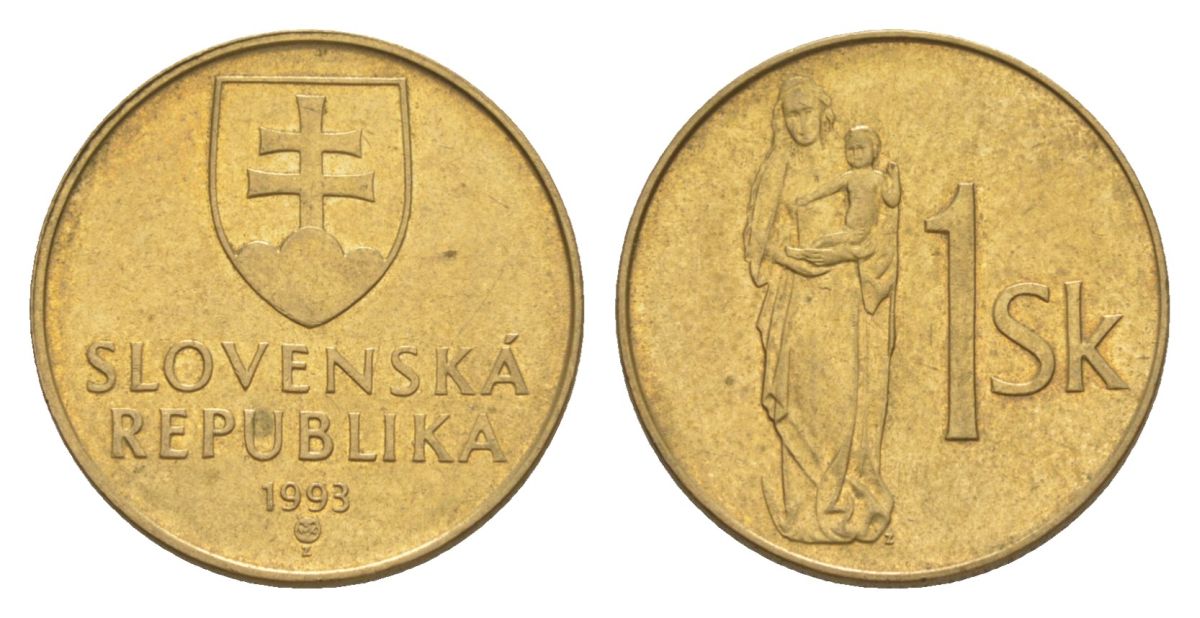 Словакия 1 крона 1993 KM 12 сталь плакированная бронзой aUNC 4633-634