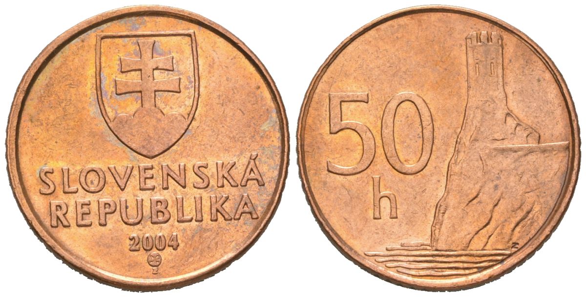Словакия 50 геллеров 2004 MK KM 35 сталь плакированная медью 206-124