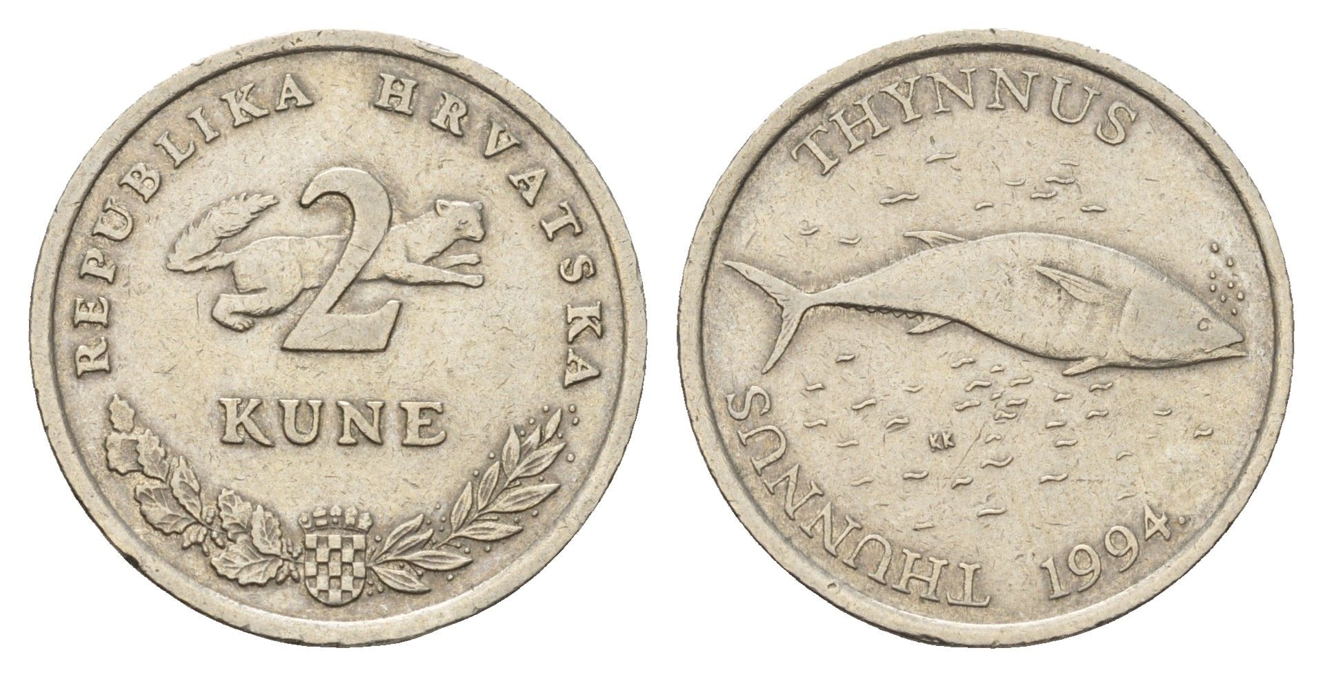 Хорватия 2 куны 1994 Голубой тунец KM 21 медь цинк никель 3459-936