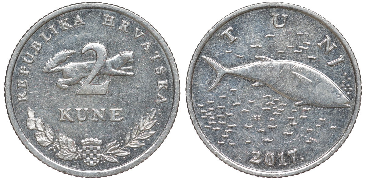 Хорватия 2 куны 2017 тунец, легенда на хорватском KM 10 медно-никель aUNC 4513-855
