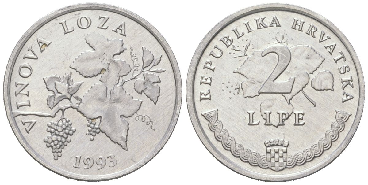 Хорватия 2 липы 1993 нечетный год, легенда на хорватском KM 4 алюминий UNC 206-264