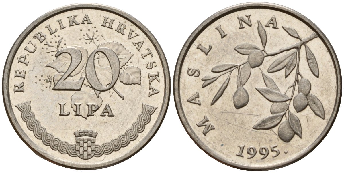 Хорватия 20 лип 1995 олива, легенда на хорватском KM 7 сталь плакированная никелем 4154-631