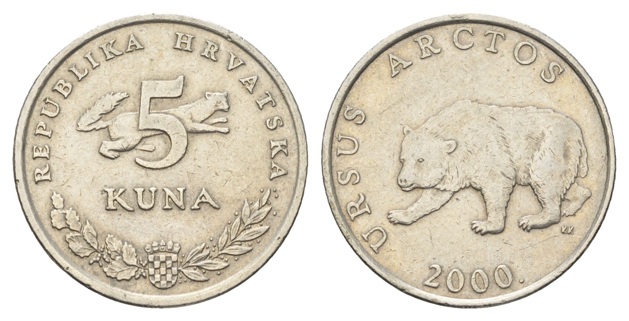 Хорватия 5 кун 2000 бурый медведь, четный год KM 23 медь цинк никель 4660-424