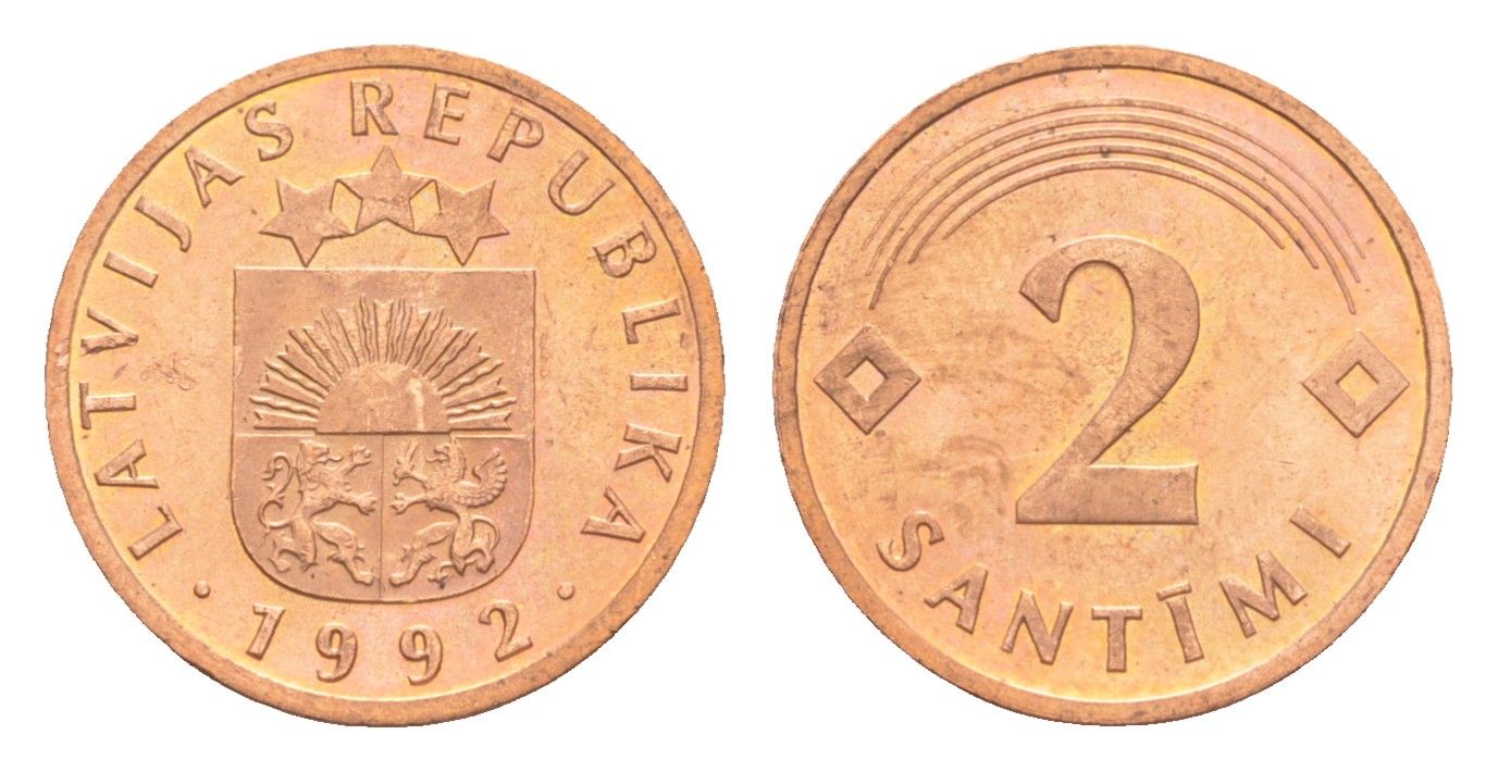 Латвия 2 сантима 1992 KM 21 сталь плакированая медью UNC 3955-1164