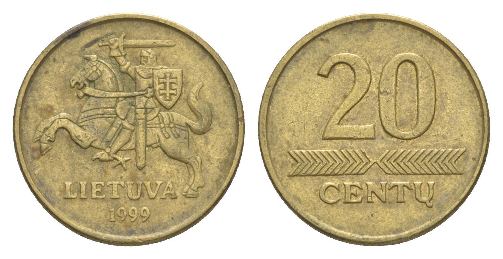 Литва 20 центов 1999 KM 107 никель латунь 4115-1015