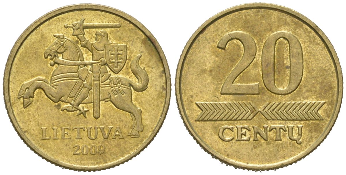 Литва 20 центов 2009 KM 107 никель латунь UNC 4618-329