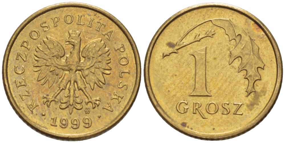 Польша 1 грош 1999 MW KM 276, Parchimowicz 701h латунь 105-732
