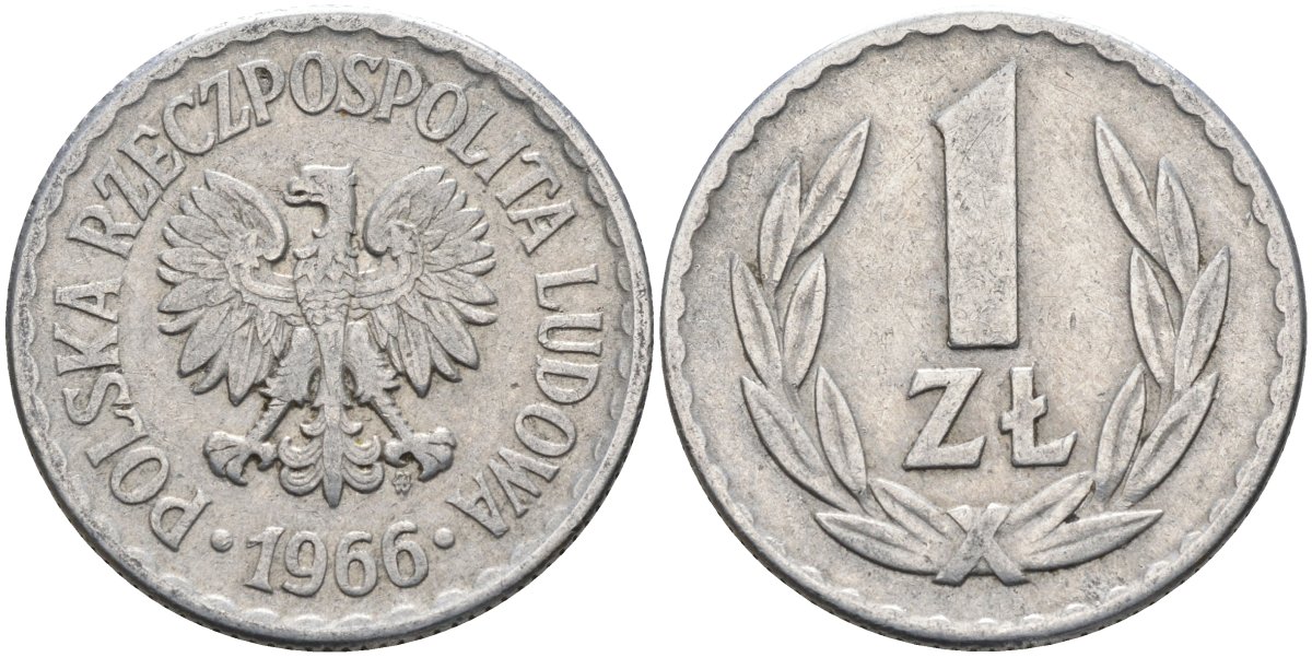 Польша 1 злотый 1966 MW, Народная Республика KM 49.1, Parchimowicz 213c алюминий 3336-734