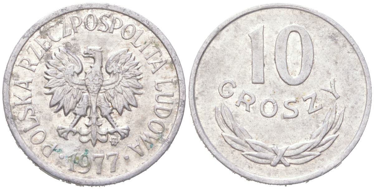 Польша 10 грошей 1977 Y AA47 алюминий 4614-628