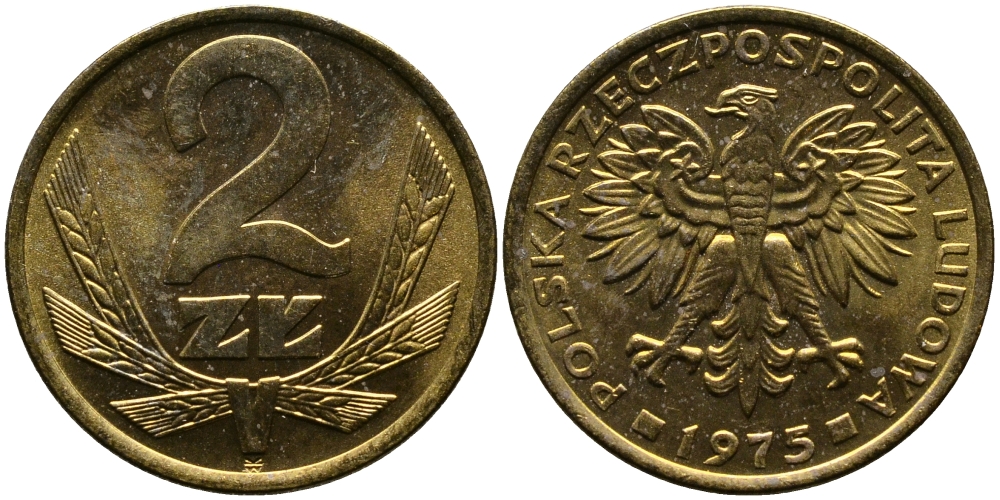 ПОЛЬША 2 ЗЛОТЫХ 1975 ЛЕНИНГРАДСКИЙ МОНДВОР KM 80.1 латунь UNC 441-442