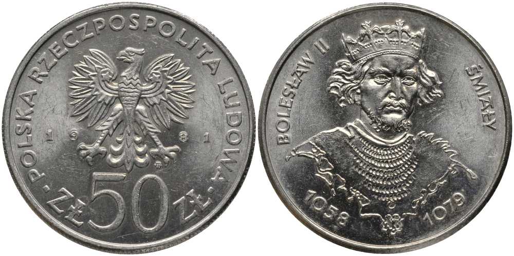 ПОЛЬША 50 ЗЛОТЫХ 1981 MW, СЕРИЯ ПОЛЬСКИЕ КОРОЛИ, БОЛЕСЛАВ II СМЕЛЫЙ (1058-1079) KM 124 медно-никель UNC 180-322