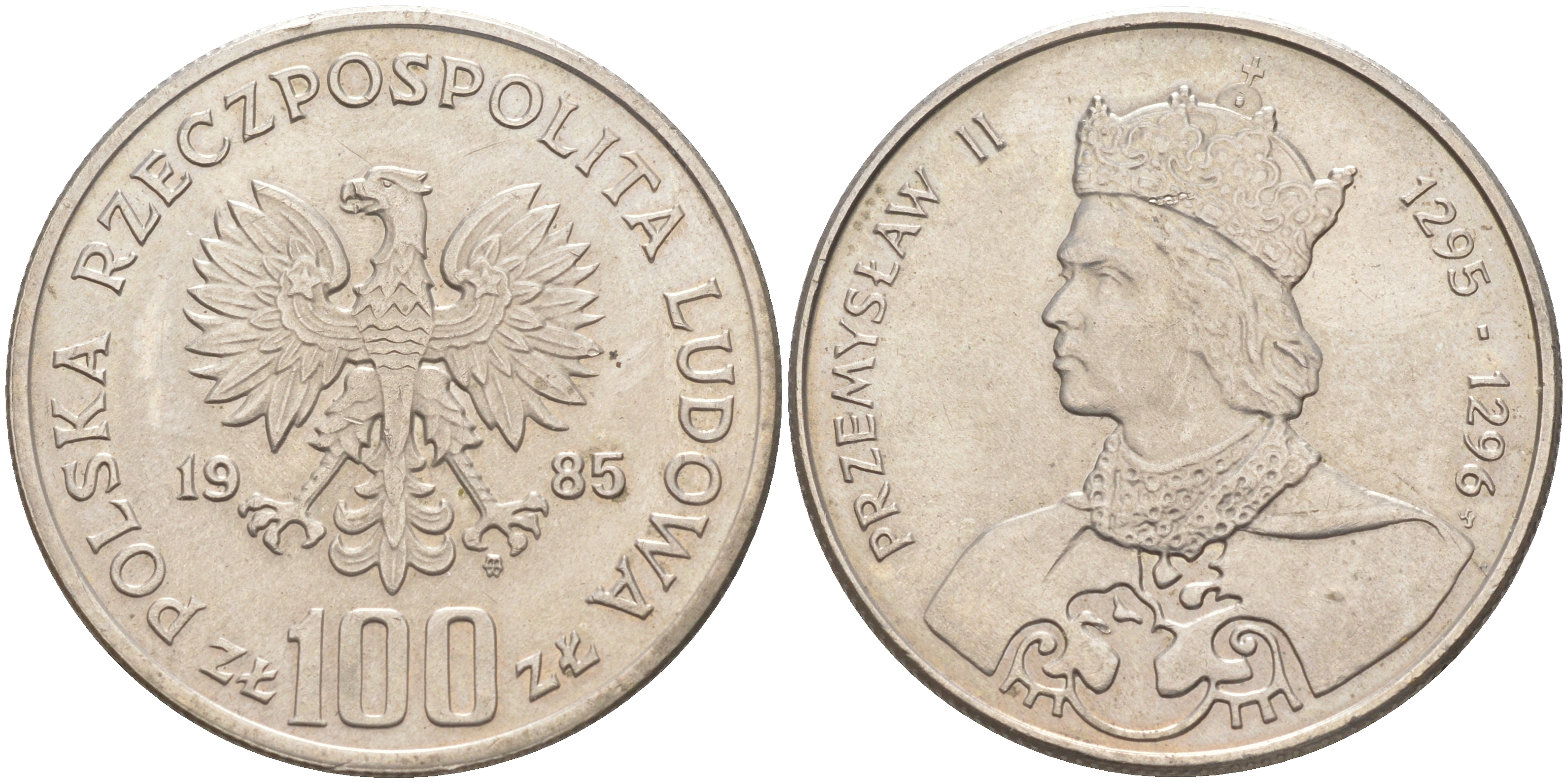 ПОЛЬША 100 ЗЛОТЫХ 1985 MW, СЕРИЯ ПОЛЬСКИЕ КОРОЛИ, ПШЕМЫСЛАВ II (1295-1296) KM 155 медно-никель UNC 4111-341
