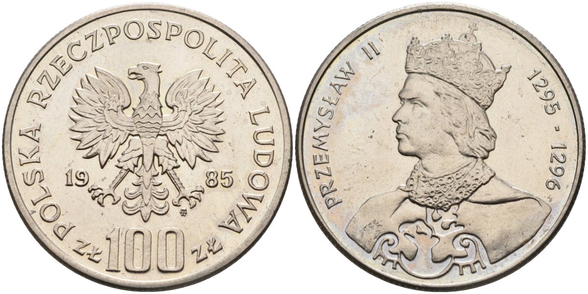 Польша 100 злотых 1985 MW, серия польские правители, Пшемыслав II (1295-1296) KM 155, Parchimowicz 411 медно-никель 189-1224
