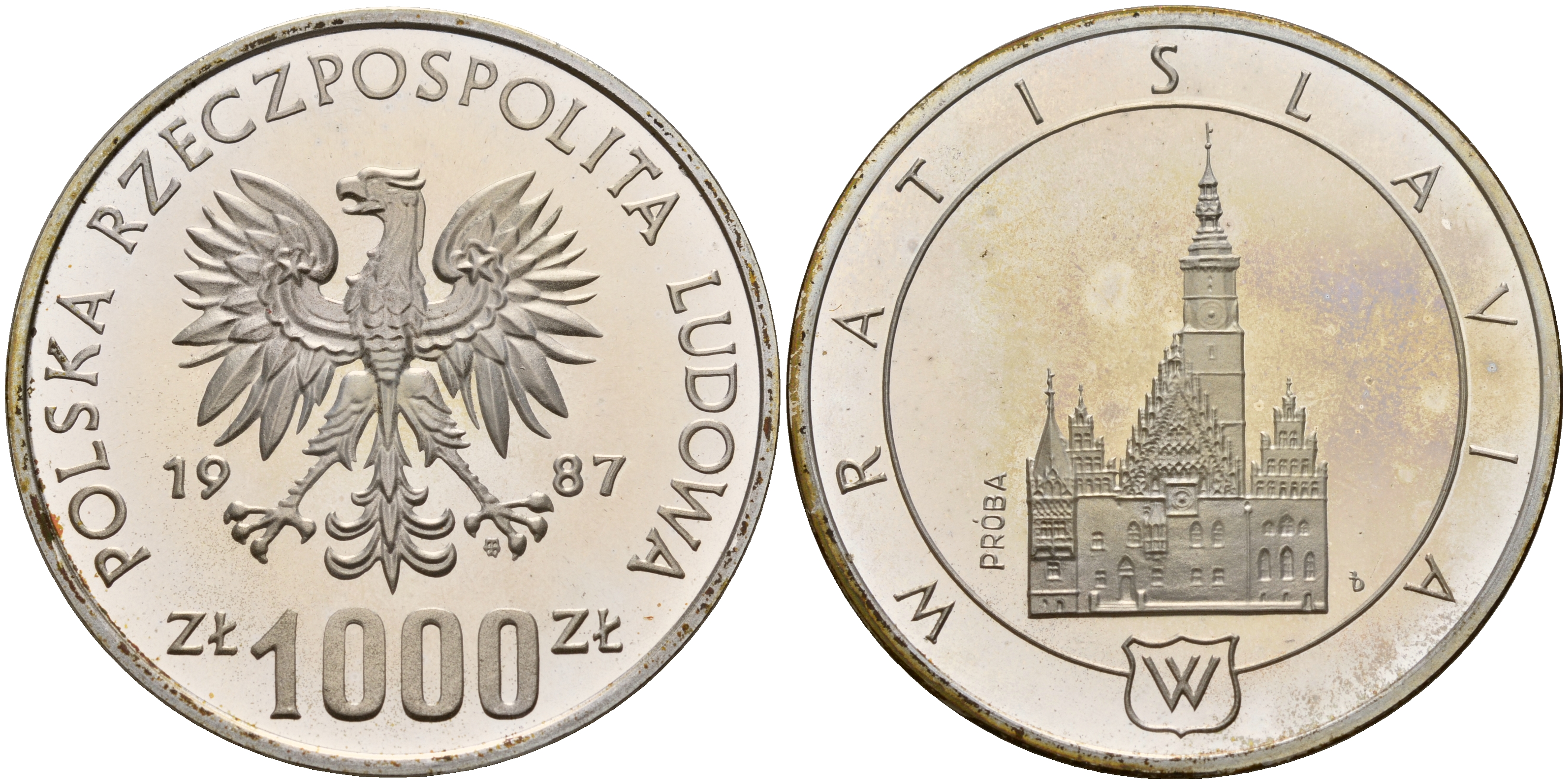 Польша 1000 злотых 1987 MW, Вроцлав, PROBA, проба, тираж 24000 экз., в оригинальной пластиковой коробке KM Pr561, Parchimowicz P.491a серебро PROOF 5-3-1-173