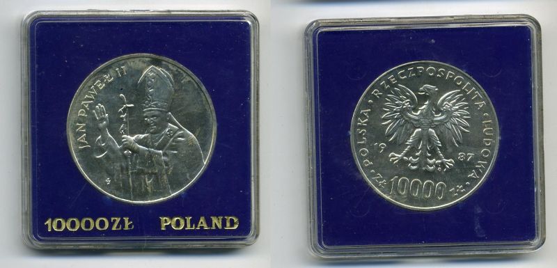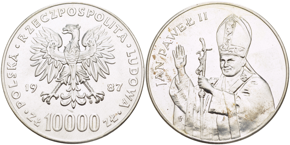 Польша 10000 злотых 1987 MW, визит папы Иоанна Павла II в Польшу KM 164, Parchimowicz 364a серебро UNC 1078-8-12