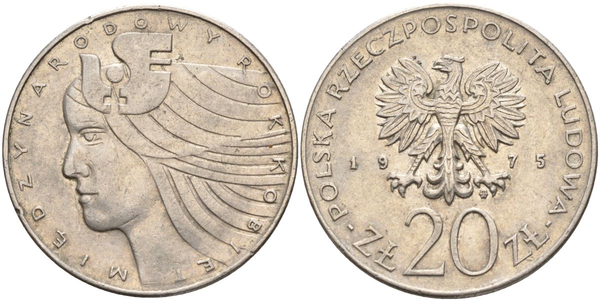 Польша 20 злотых 1975 Международный год женщины Y 75 медно-никель AUNC 4531-1234