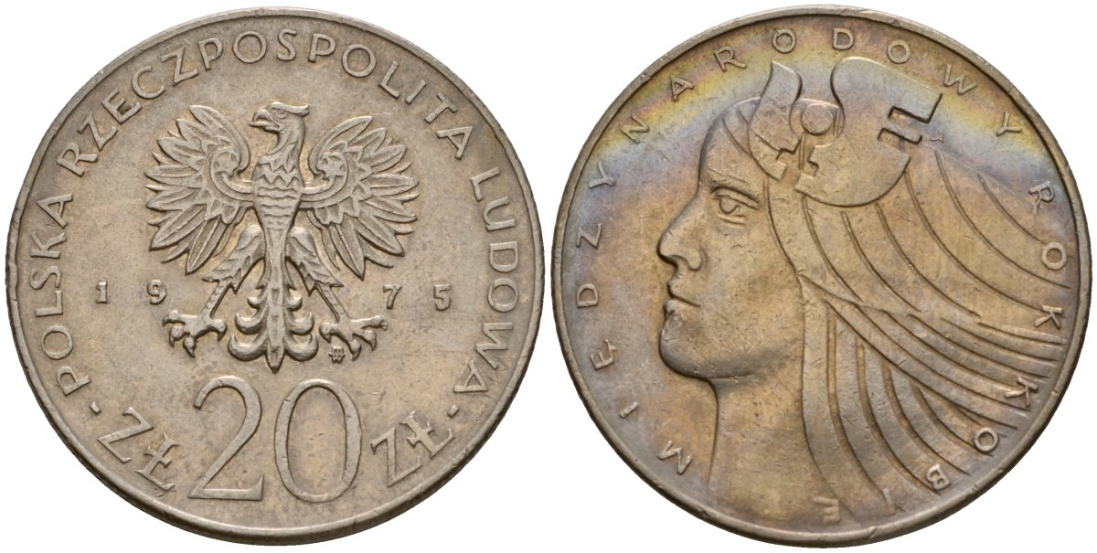 Польша 20 злотых 1975 MW, Международный год женщины Y 75 медно-никель UNC 97-311