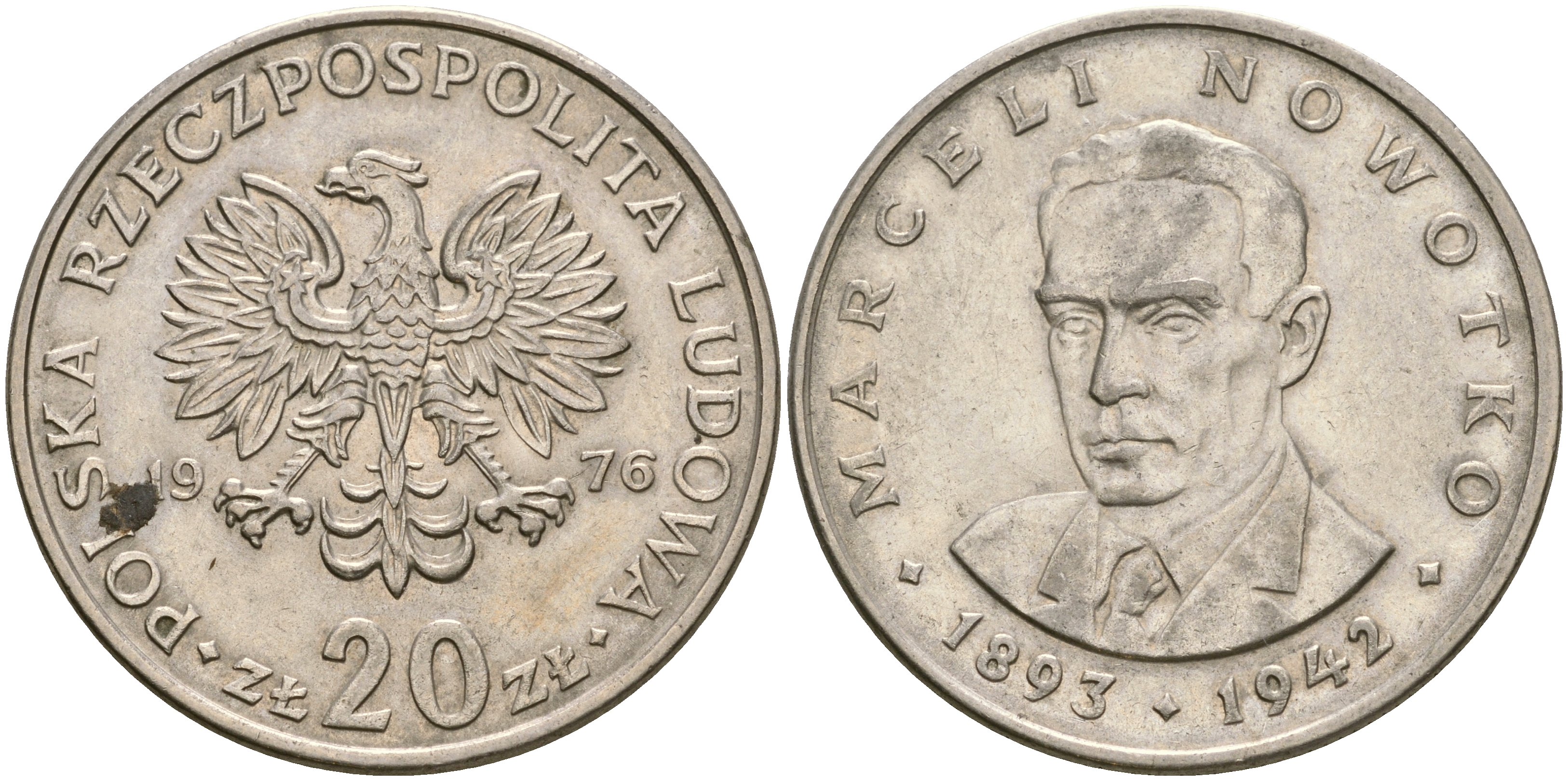 Польша 20 злотых 1976 Марцелий Новотко, монетный двор Кремница KM 69, Parchimowicz 246c медно-никель 4364-1736