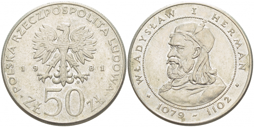 ПОЛЬША 50 ЗЛОТЫХ 1981 MW, СЕРИЯ ПОЛЬСКИЕ КОРОЛИ, ВЛАДИСЛАВ I ГЕРМАН (1079-1102) KM 128 медно-никель 4403-632