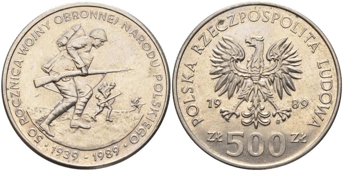 Польша 500 злотых 1989 50 лет с начала Второй Мировой войны Y 185 медно-никель 4162-914