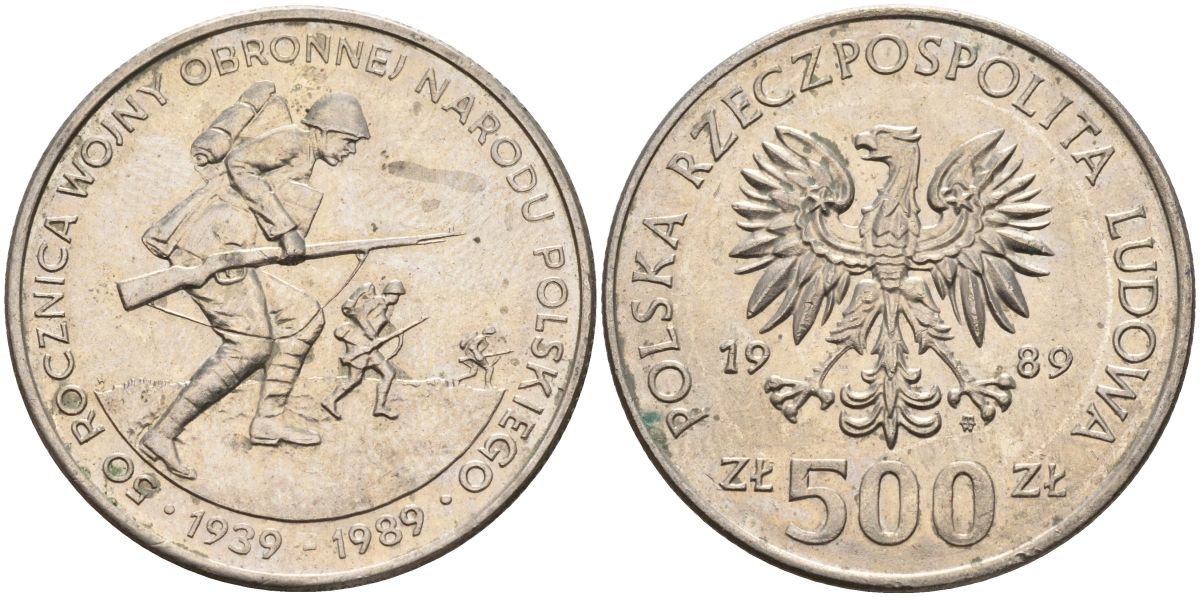 Польша 500 злотых 1989 50 лет с начала Второй Мировой войны Y 185 медно-никель 4162-915