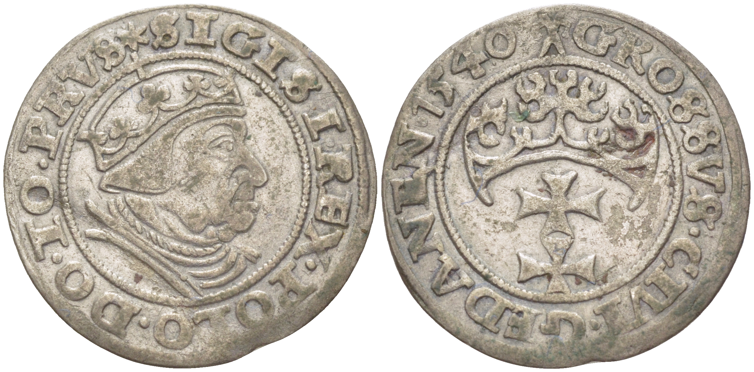Данциг 1 грош 1540 Сигизмунд I Старый (1506-1548), вес 1,94 гр Schulten 675 серебро 1516-1435
