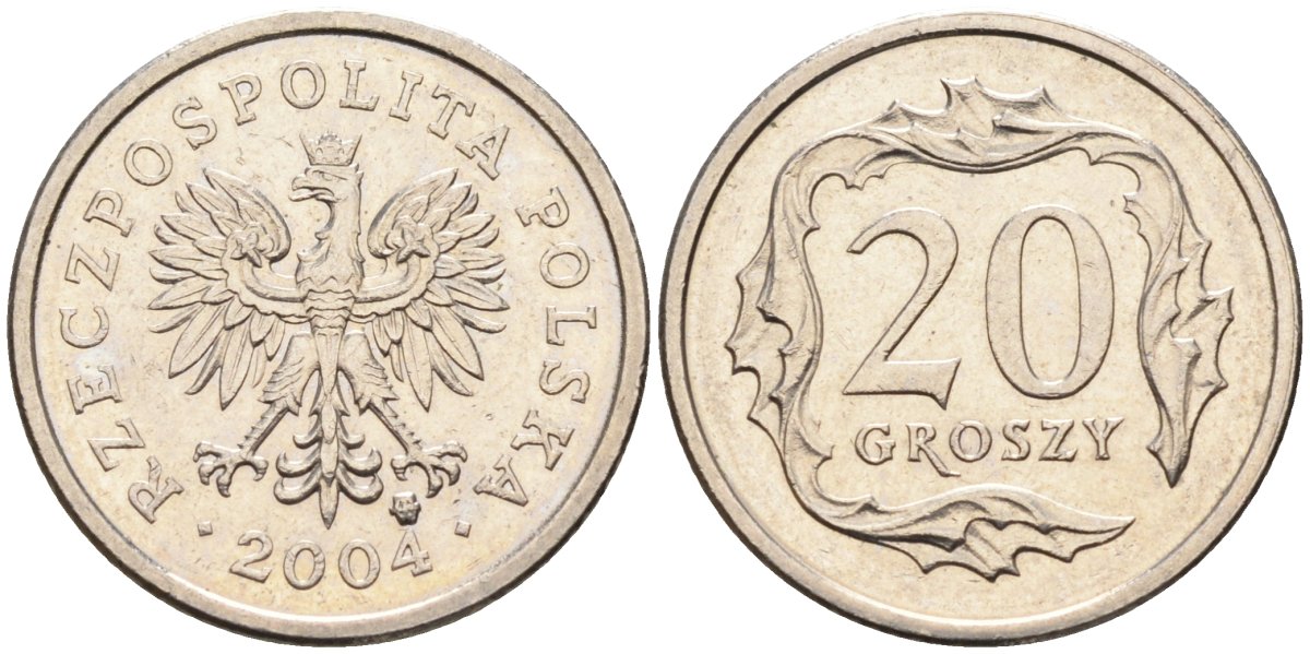 Польша 20 грошей 2004 MW KM 280, Parchimowicz 705l медно-никель 4580-712