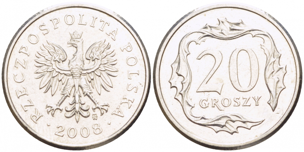 ПОЛЬША 20 ГРОШЕЙ 2008 MW KM 280 медно-никель UNC 4516-1234
