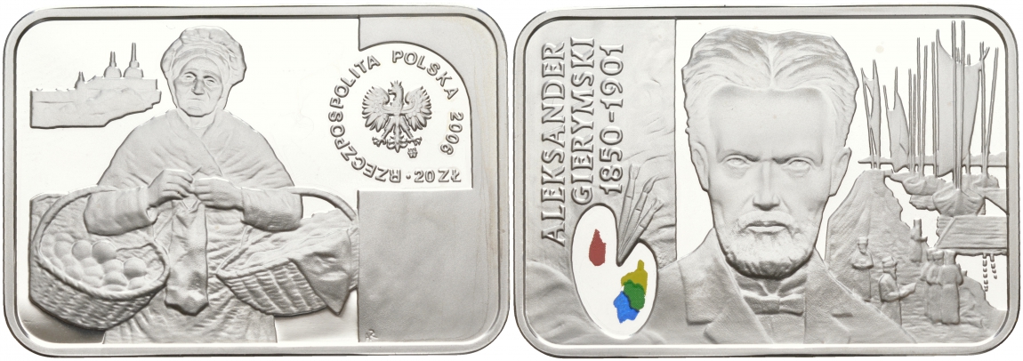 Польша 20 злотых 2006 Польские художники XIX-XX вв. Александр Герымский, цветная эмаль KM 604 серебро PROOF 1069-7-32