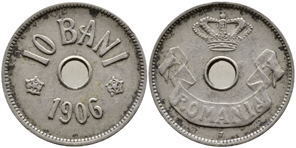 РУМЫНИЯ 10 БАНИ 1906 J, КАРОЛЬ I (1881-1914) KM 32 медно-никель 4388-1255
