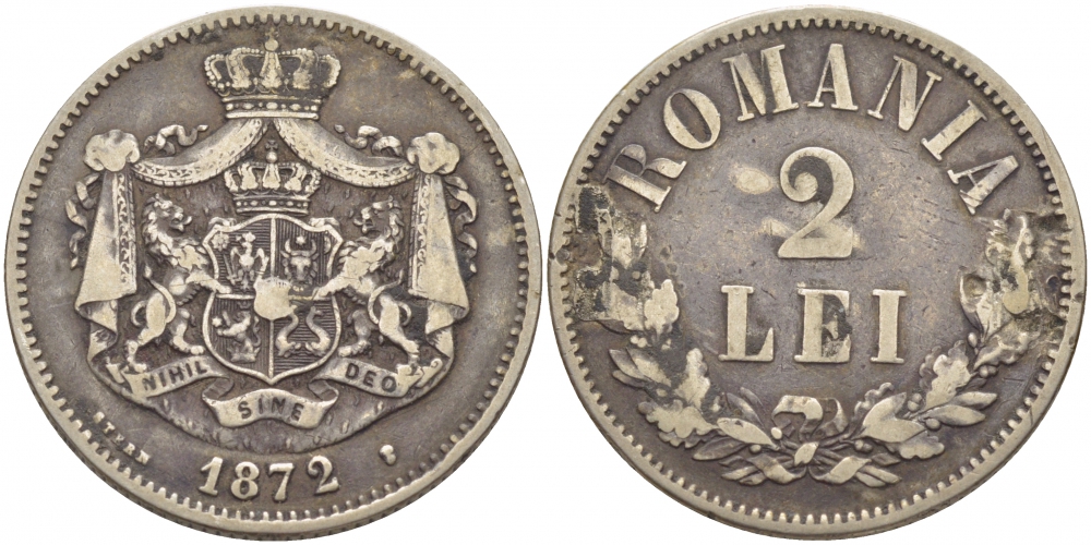 Румыния 2 лея 1872 b, Кароль I как принц (1866-1881) KM 8 серебро 111-744