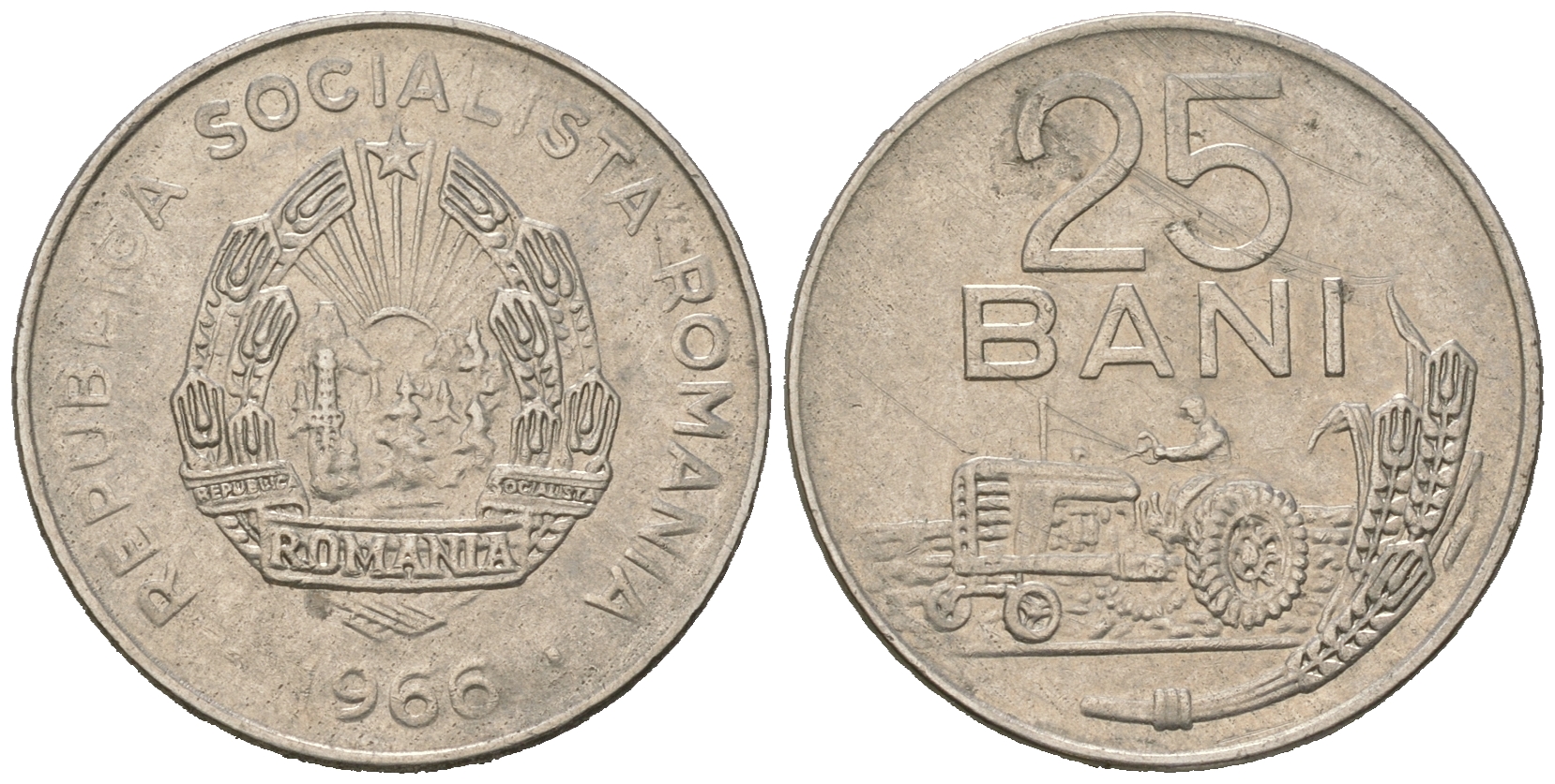 Румыния 25 бани 1966 трактор KM 94 сталь плакированная никелем 4641-646
