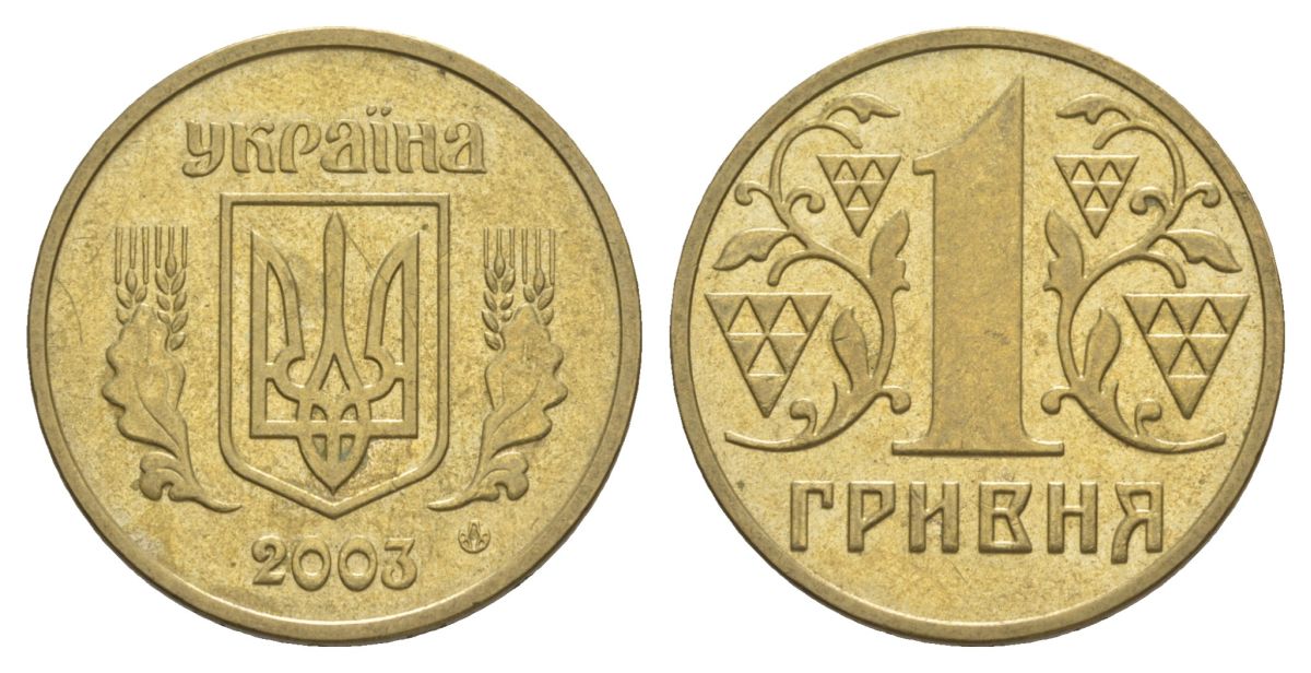 Украина 1 гривна 2003 KM 8b алюминиевая бронза 4633-555