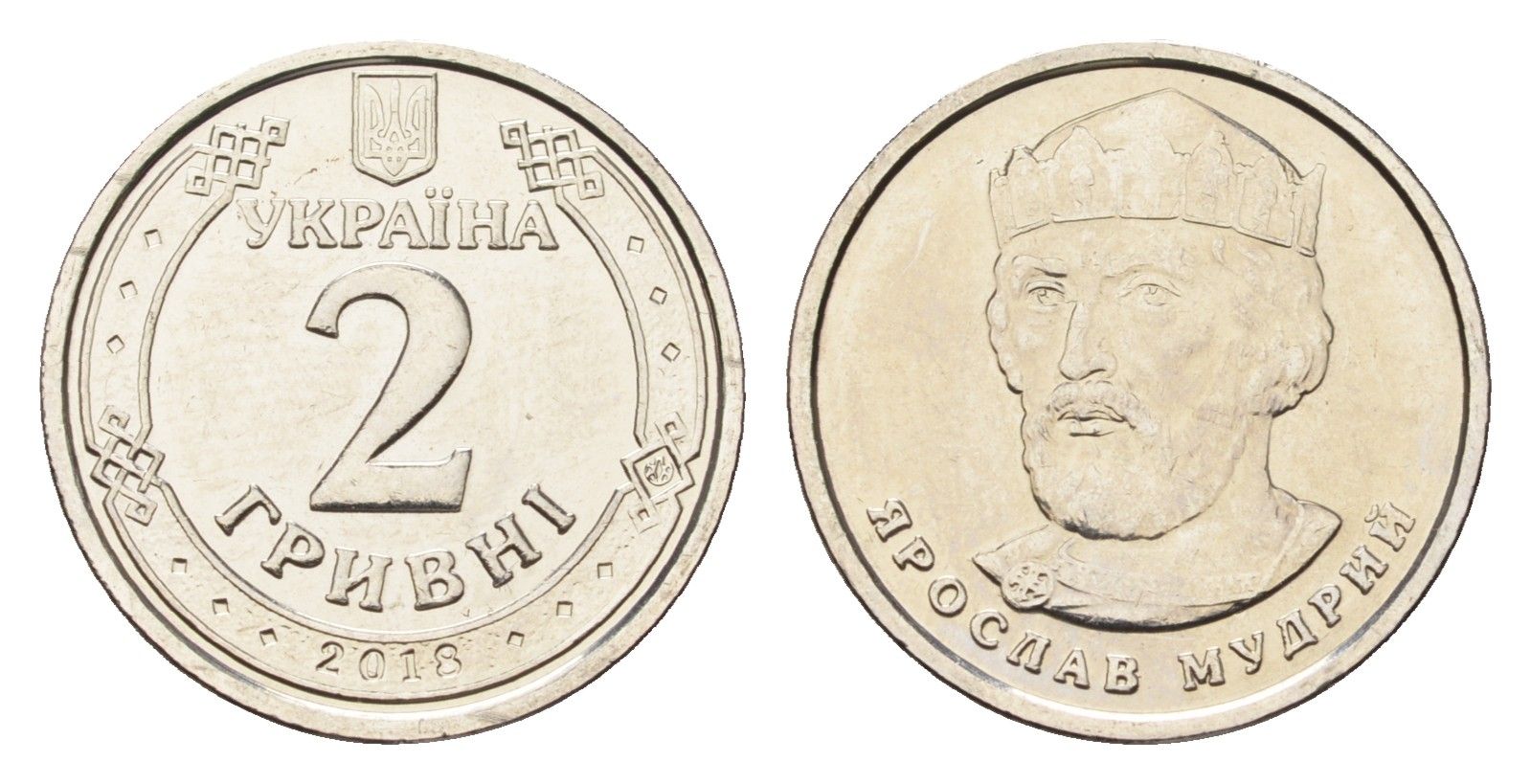 Украина 2 гривны 2018 Владимир Великий сталь плакированная никелем UNC 4665-328