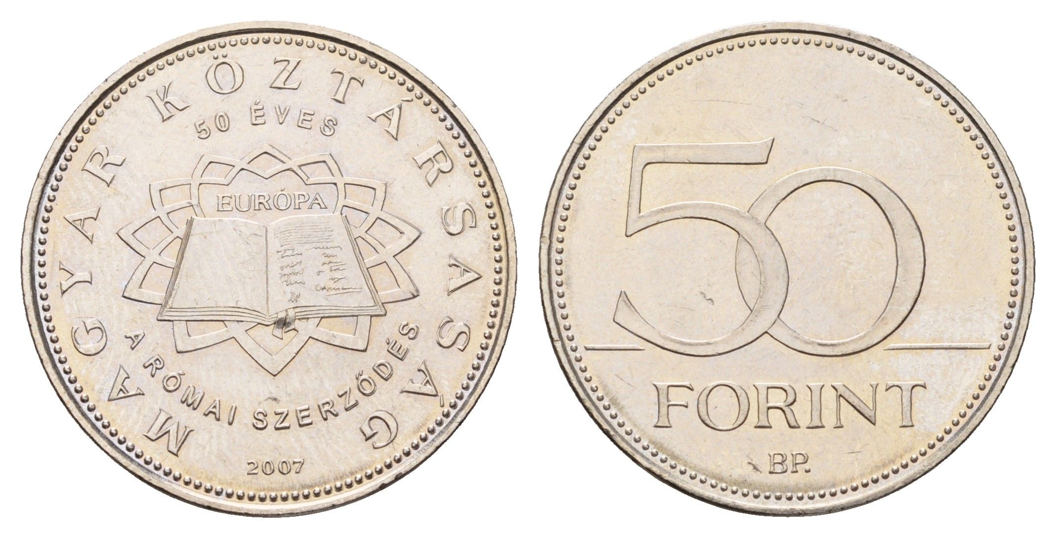 Венгрия 50 форинтов 2007 50 лет подписанию Римского договора KM 805 латунь плакированная медно-никелем UNC 4119-125