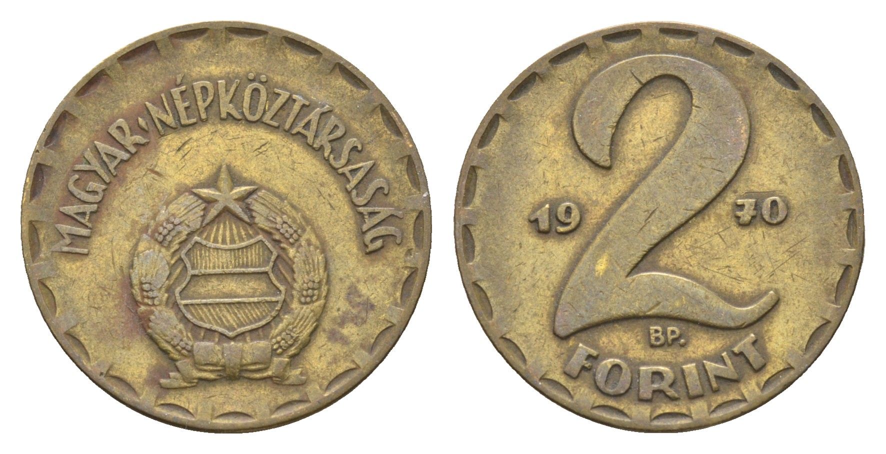 Венгрия 2 форинта 1970 BP KM 591 латунь 4668-441