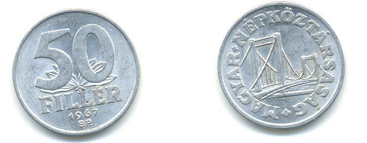 ВЕНГРИЯ 50 ФИЛЛЕРОВ 1967 МОСТ ЕЛИЗАВЕТЫ В БУДАПЕШТЕ, НАРОДНАЯ РЕСПУБЛИКА (1949-1989) KM 574 алюминий 93-143