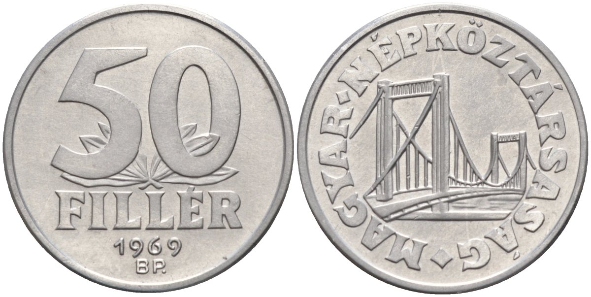 ВЕНГРИЯ 50 ФИЛЛЕРОВ 1969 МОСТ ЕЛИЗАВЕТЫ В БУДАПЕШТЕ, НАРОДНАЯ РЕСПУБЛИКА (1949-1989) KM 574 алюминий 25-2433