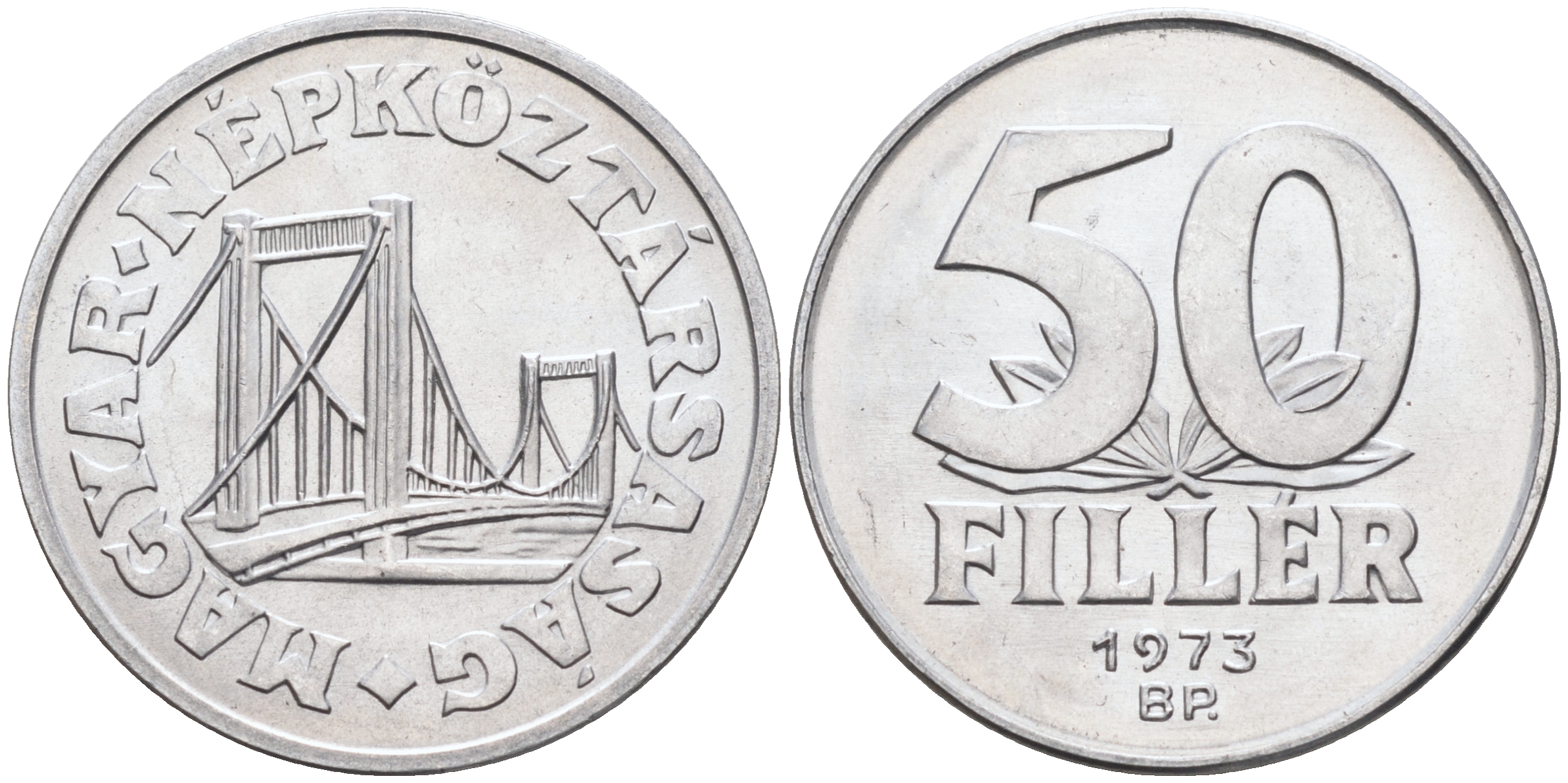 ВЕНГРИЯ 50 ФИЛЛЕРОВ 1973 МОСТ ЕЛИЗАВЕТЫ В БУДАПЕШТЕ, НАРОДНАЯ РЕСПУБЛИКА (1949-1989) KM 574 алюминий UNC 4589-422