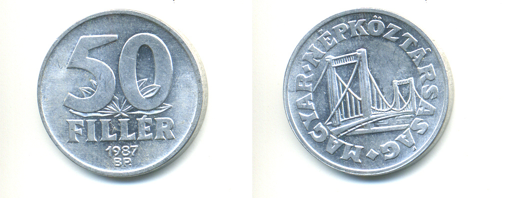 ВЕНГРИЯ 50 ФИЛЛЕРОВ 1987 МОСТ ЕЛИЗАВЕТЫ В БУДАПЕШТЕ, НАРОДНАЯ РЕСПУБЛИКА (1949-1989) KM 574 алюминий 83-1642