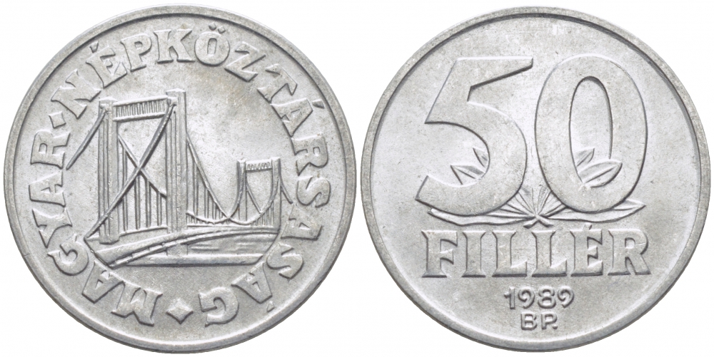 ВЕНГРИЯ 50 ФИЛЛЕРОВ 1989 МОСТ ЕЛИЗАВЕТЫ В БУДАПЕШТЕ, НАРОДНАЯ РЕСПУБЛИКА (1949-1989) KM 574 алюминий UNC 113-1117