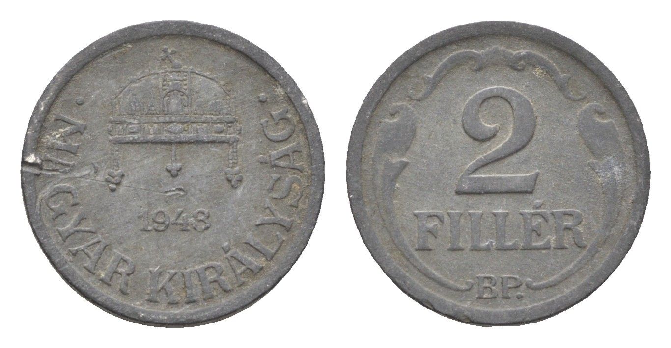 Венгрия 2 филлера 1943 BP KM 519 цинк 4664-863