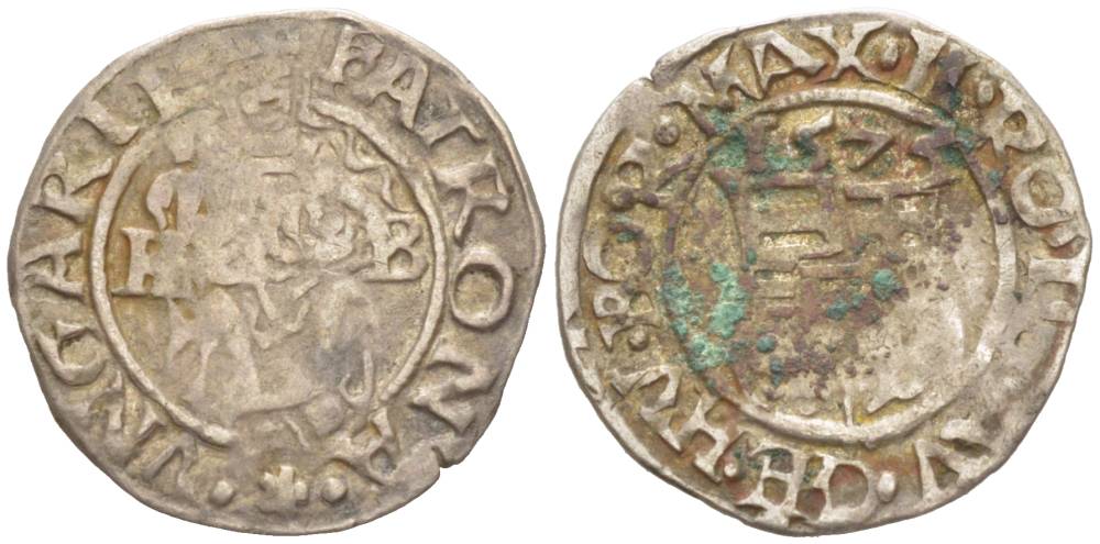 ВЕНГРИЯ 1 ДЕНАР 1575 KB, МАКСИМИЛИАН II ИМПЕРАТОР (1564-1576) Huszar 993 серебро 4532-1238