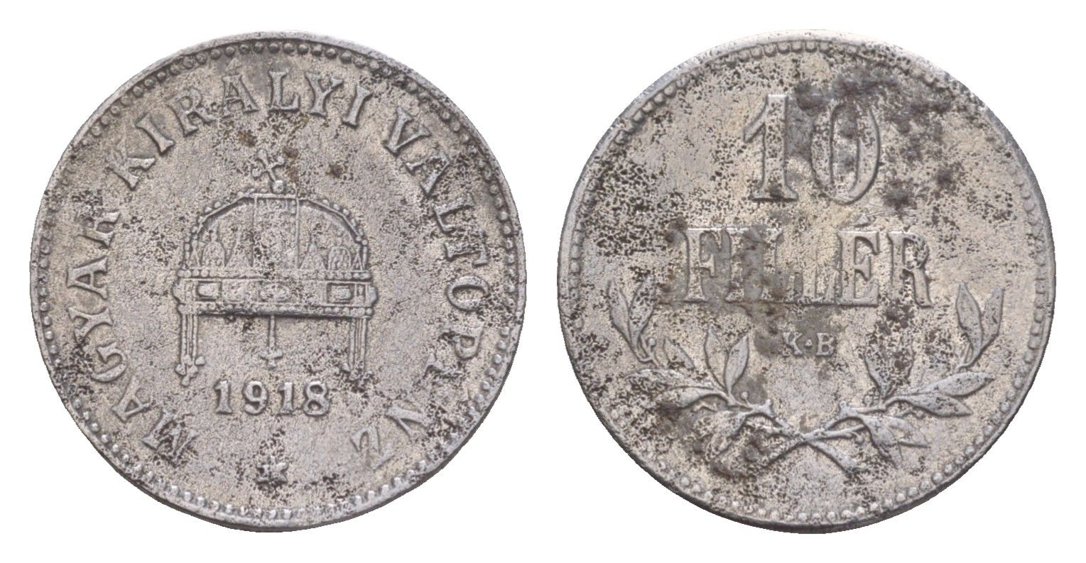 Венгрия 10 филлеров 1918 KB, Карл I (1916-1918) KM 496 железо 4651-1037
