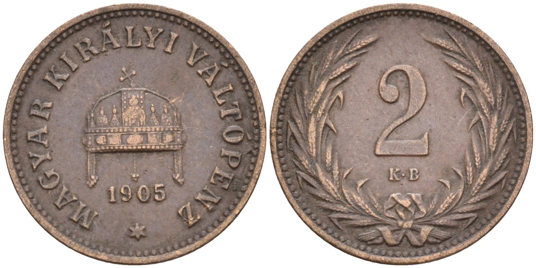 Венгрия 2 филлера 1905 КВ, Франц Иосиф I (1848-1916) KM 481 бронза 54-917