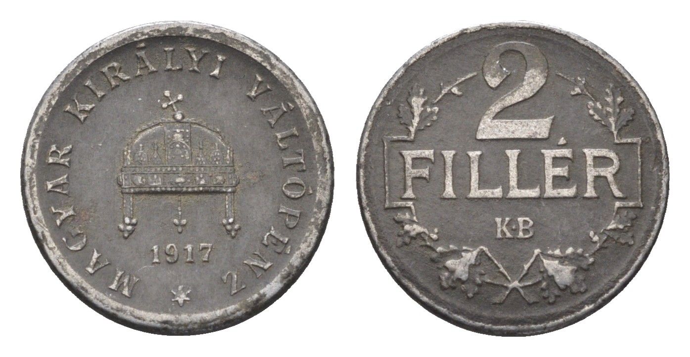 Венгрия 2 филлера 1917 KB, Карл I (1916-1918) KM 497 железо 4664-826