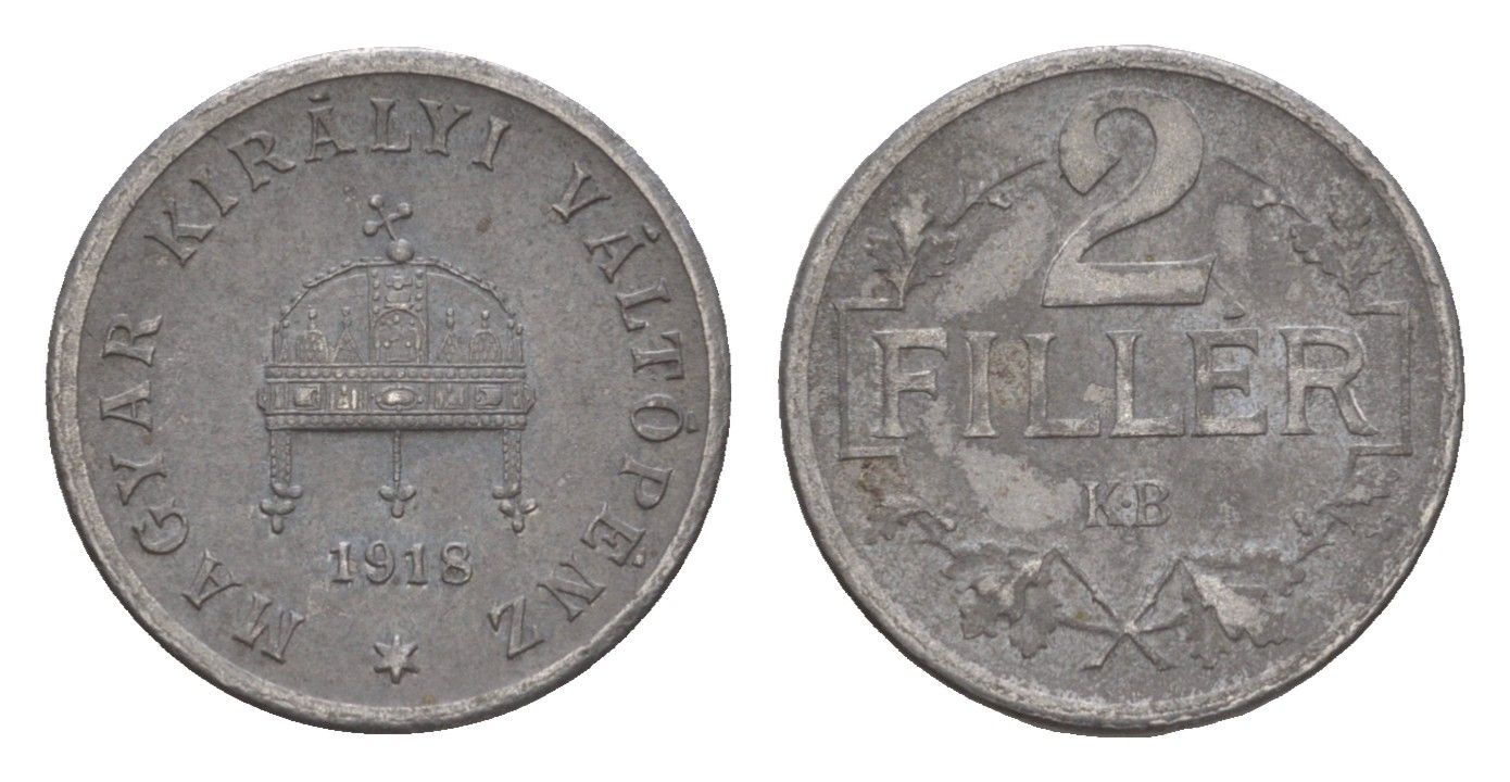 Венгрия 2 филлера 1918 KB, Карл I (1916-1918) KM 497 железо 4658-325