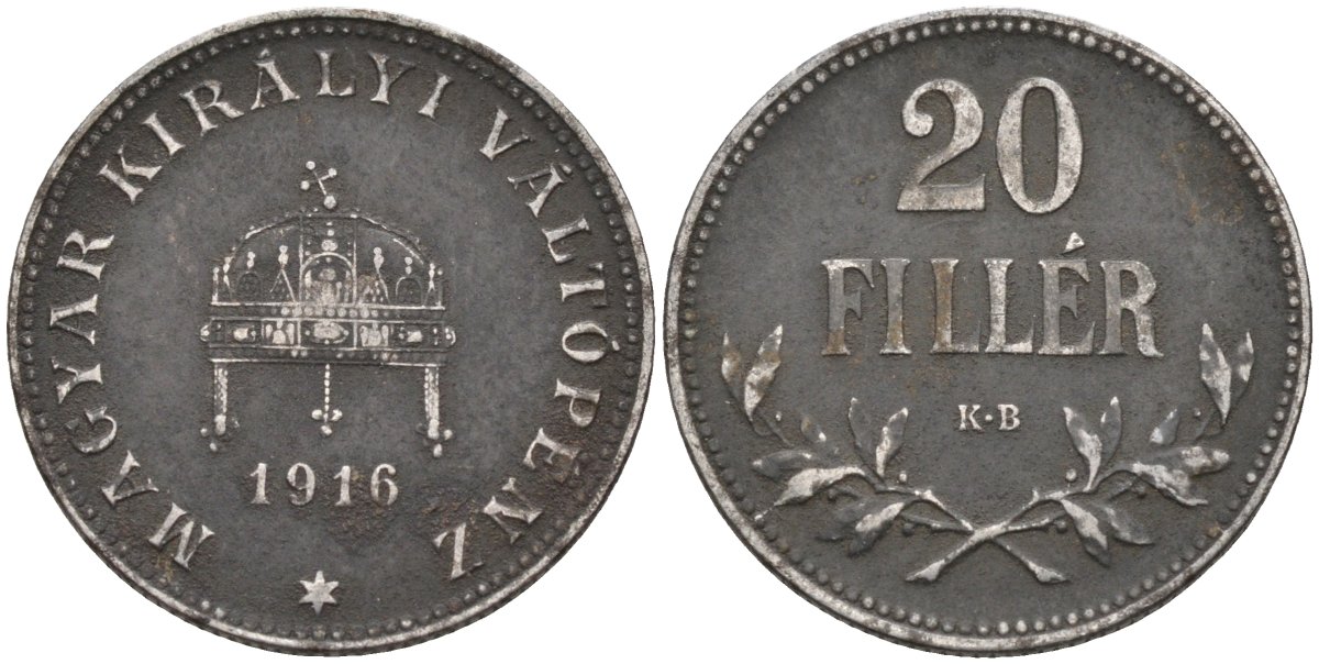 Венгрия 20 филлеров 1916 КВ, Карл I (1916-1918) KM 498 железо 4584-124