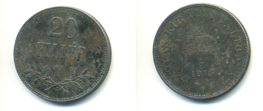 Венгрия 20 филлеров 1916 КВ, Карл I (1916-1918) KM 498 железо 83-1322